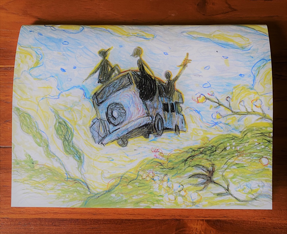 * Ζωγραφιά του ήρωα της σειράς, Sang-Tae που απεικονίζει τους τρεις ήρωες της σειράς.